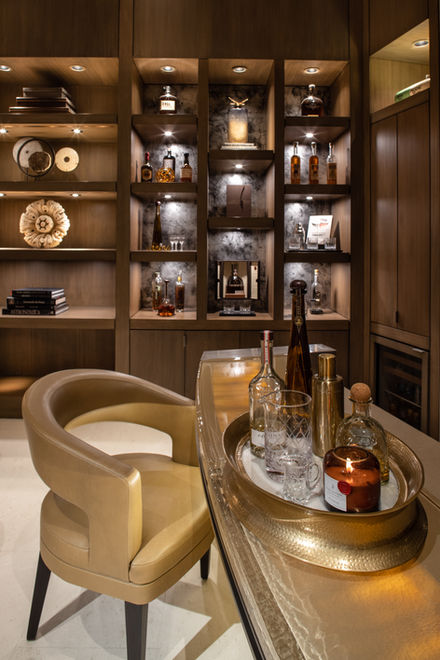 Enhanced Layout and Flow: We curated distinct zones in the vast great room to foster interaction and highlight the breathtaking views. From a cozy gathering area with a sizable TV to a chic bar zone, complete with swivel seating for optimal mingling, each space was meticulously designed to maximize functionality and allure.